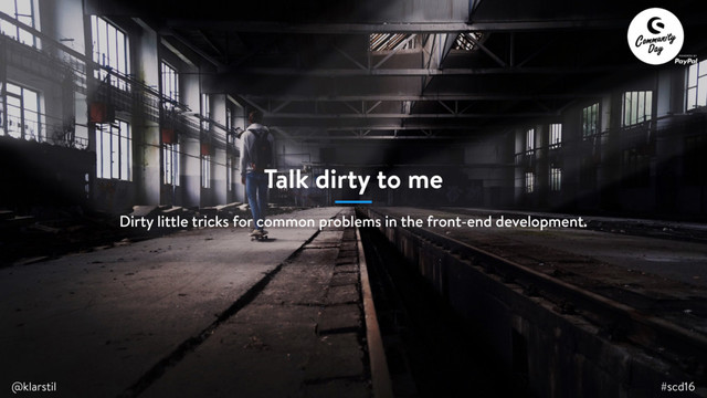 In this talk I'll go through common problems in the daily front-end development and will show off little nifty techniques to solve them. You know how it works: you're working on an awesome feature for your storefront and you're facing a problem and have no idea how to solve it. Don't waste your time and spend hours trying to find a workaround that probably will never deployed to production. The walks you through the techniques and workarounds I found out the hard way over the last 5 years of front-end development. The talks covers every topic which is common - HTML links can't be nested or how to get all form data without iterating over every field in the form.