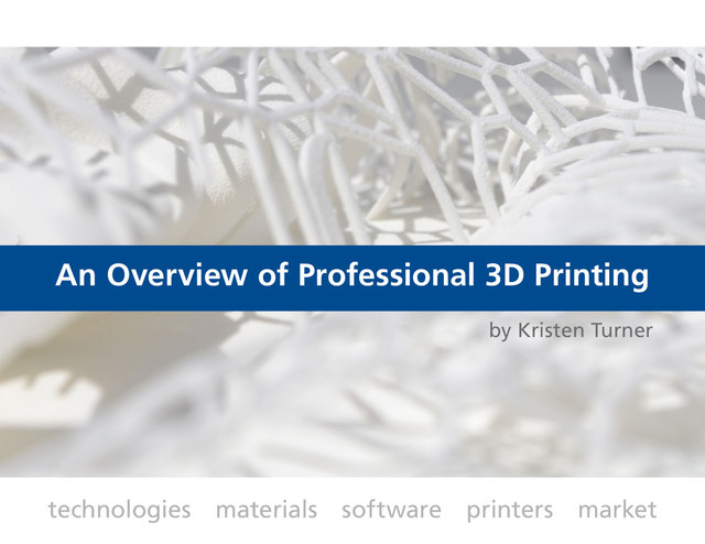 manufacturers of professional 3D printers • Services: 100+ service bureaus offering 3D printing • Scanning: 50+ developers & services of 3D scanning • Events: 10+ trade shows & conferences on 3D printing • Other Developments: DRM, file libraries, materials research Key manufacturers of 3D printers