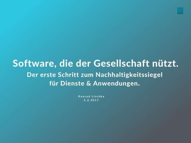 Es ist Zeit für ein Umdenken, Zeit für eine nachhaltige Nutzung von Anwendungen und Diensten der digitalen Sphäre. Unser heutiges Handeln bestimmt das Netz von morgen. Was nützt der Gesellschaft insgesamt? Für Bio-Lebensmittel haben sich Standards durchgesetzt. Wie könnten solche Standards, übertragen auf das nachhaltige Netz aussehen? Was ist unser Anspruch an Dienste und Anwendungen?