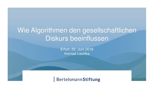 earth flat or round?, 18.2.2018 Backstrom, Lars. „News Feed FYI: A Window Into News Feed“. Facebook for Business, 6. August 2013. Bakshy, Eytan, Solomon Messing, und Lada A Adamic. „Exposure to ideologically diverse news and opinion on Facebook“. Science 348, Nr. 6239 (2015): 1130–32. https://doi.org/10.1126/science.aaa1160. Bessi, Alessandro. „Personality Traits and Echo Chambers on Facebook“. arXiv:1606.04721 [cs], 15. Juni 2016. http://arxiv.org/abs/1606.04721. Bessi, Alessandro, Fabio Petroni, Michela Del Vicario, Fabiana Zollo, Aris Anagnostopoulos, Antonio Scala, Guido Caldarelli, und Walter Quattrociocchi. „Viral misinformation: The role of homophily and polarization“. In Proceedings of the 24th International Conference on World Wide Web, 355–356. ACM, 2015. http://dl.acm.org/citation.cfm?id=2745939. Borgesius, Zuiderveen, Frederik J, Damian Trilling, Judith Moeller, Balázs Bodó, De Vreese, Claes H, und Natali Helberger. „Should We Worry About Filter Bubbles?“ SSRN Scholarly Paper. Rochester, NY: Social Science Research Network, 2. April 2016. https://papers.ssrn.com/abstract=2758126. Ecke, Oliver. „Wie häufig und wofür werden Intermediäre genutzt?“ Berlin, 30. November 2016. Eyal, Nir. Hooked: how to build habit-forming products. New York, New York: Portfolio/Penguin, 2014. Facebook. „How News Feed Works“. Nonprofits on Facebook, 17. Juni 2016. Facebook. „Werte des News Feed“. Facebook News Feed (blog), 28. Juni 2016. https://newsfeed.fb.com/values/. Gabielkov, Maksym, Arthi Ramachandran, Augustin Chaintreau, und Arnaud Legout. „Social Clicks: What and Who Gets Read on Twitter?“ ACM SIGMETRICS/IFIP Performance 2016, 2016. https://hal.inria.fr/hal-01281190/file/sigm095-gabielkov.pdf. Hasebrink, Uwe, Jan-Hinrik Schmidt, und Lisa Merten. „Wie fließen Intermediäre in die Meinungsbildung ein?“ Berlin, 30. November 2016. Iyengar, Shanto, und Kyu S. Hahn. „Red media, blue media: Evidence of ideological selectivity in media use“. Journal of Communication 59, Nr. 1 (2009): 19– 39. Kahneman, Daniel. Schnelles Denken, langsames Denken. Übersetzt von Thorsten Schmidt. Siedler Verlag, 2012. Lischka, Konrad, und Christian Stöcker. „Digitale Öffentlichkeit“. BStift - Bertelsmann Stiftung, 2017. https://doi.org/10.11586/2017028 23.05.2018 | Wie algorithmisch sortierte Intermediäre wirken 29