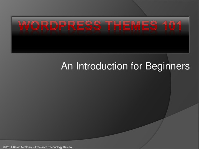 pay for a theme when there are FREE themes out there???” Good Question! Know what makes a GOOD theme! ◦ Proper Coding ◦ Consistent & Continuing Support ◦ Continuously Upgraded with WordPress ◦ Theme Quality… A Very Hot Topic! Karen McCamy - Freelance Technology Review