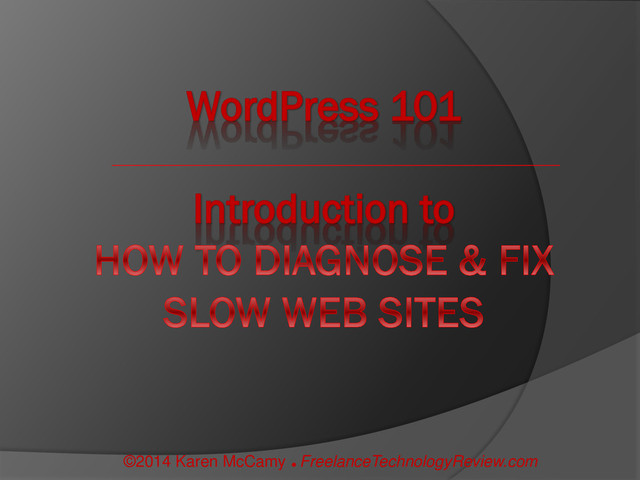 Introduction to the problems, causes and possible remedies for speeding up a slow web site. Very introductory. Includes free online diagnostic tools. For the "Beginner"