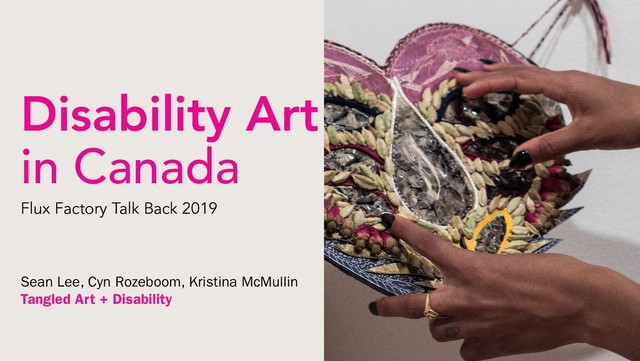 Presented by Sean Lee, Cyn Rozeboom, and Kristina McMullin of Tangled Art + Disability this presentation explored Disability Arts in Canada: the Disability Aesthetic, Tangled Art Gallery Programming, Disability Arts Organizational Structure and Fundraising, Accessible Marketing and Outreach. This talk was presented at Flux Factory's TALK BACK in New York City. TALK BACK centers the lives and leadership of disabled artists and organizers, asserting that deep-rooted cultural changes must be made within the art world to become more inclusive and accessible.