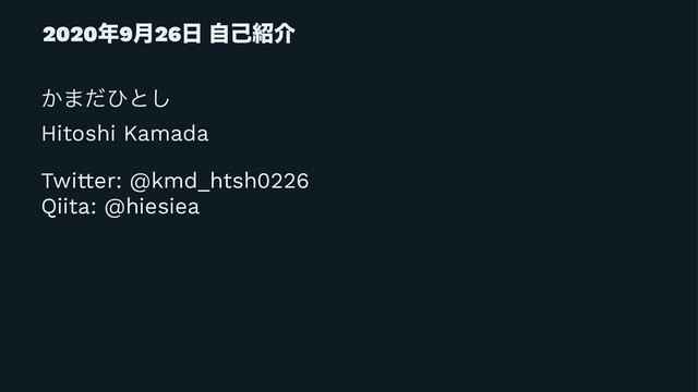 20209݄26 ࣗݾհ ͔·ͩͻͱ͠ Hitoshi Kamada Twitter: @kmd_htsh0226 Qiita: @hiesiea