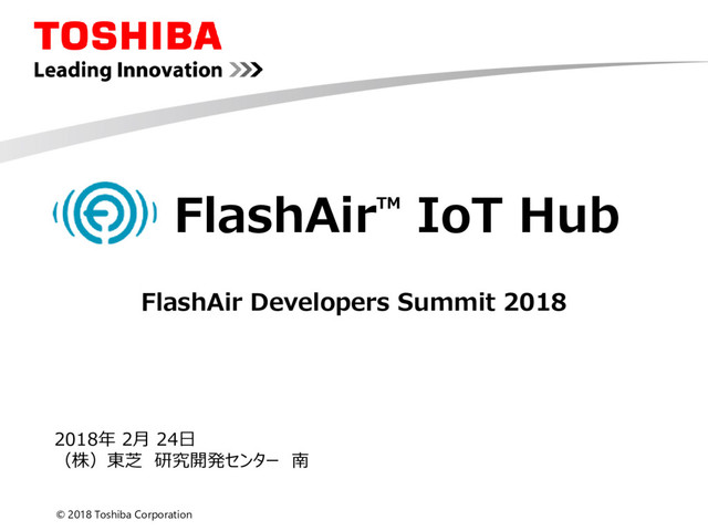 FlashAir Developers Summit 2018 • FlashAirは、東芝メモリ株式会社の商標です • その他本資料に掲載の商品、機能等の名称は、それぞれ各社が商標として使用している場合があります