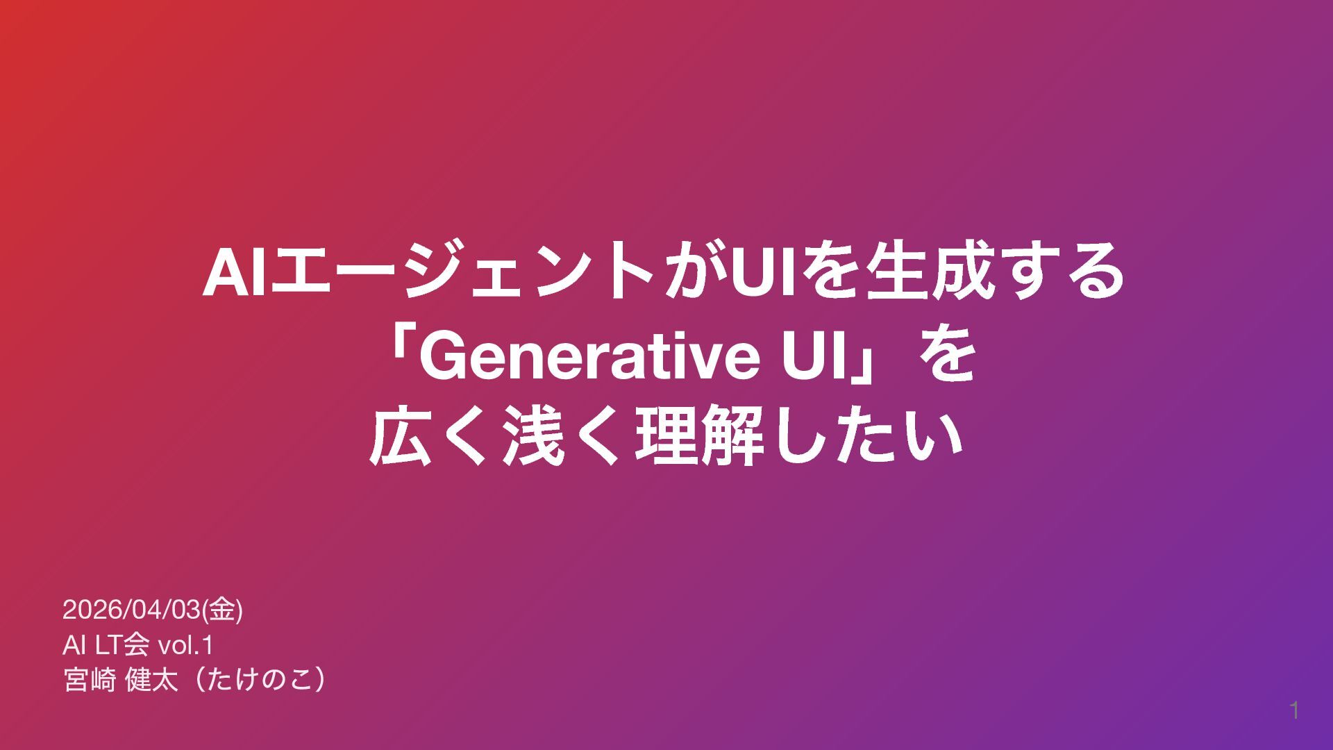 AI エージェントがUI を生成する 「Generative UI 」を 広く浅く理解したい 2026/04/03( 金) AI