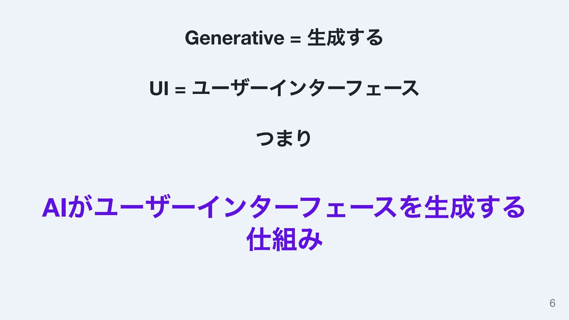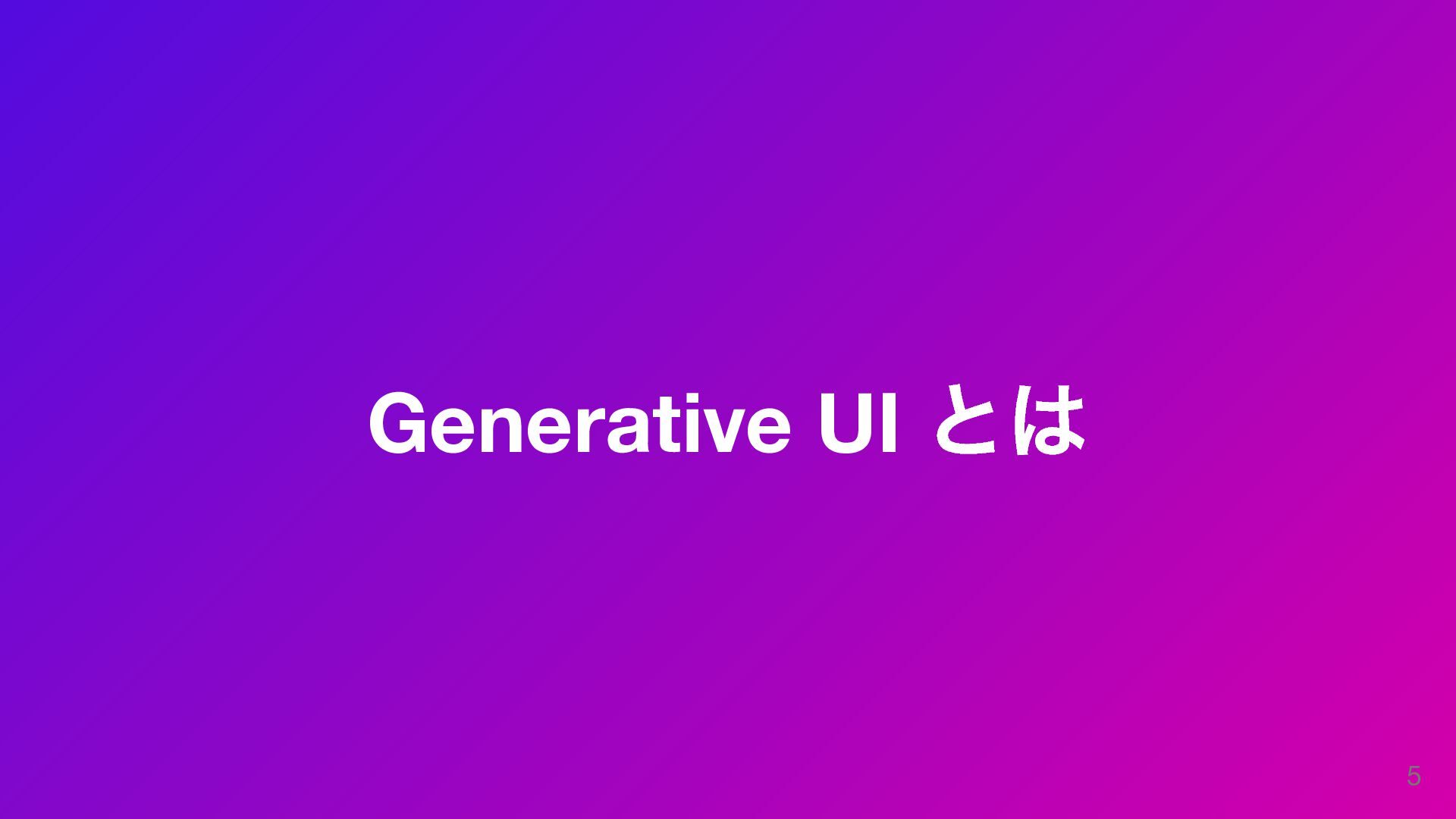 Generative = 生成する UI = ユーザーインターフェース つまり AI がユーザーインターフェースを生成する 仕組み