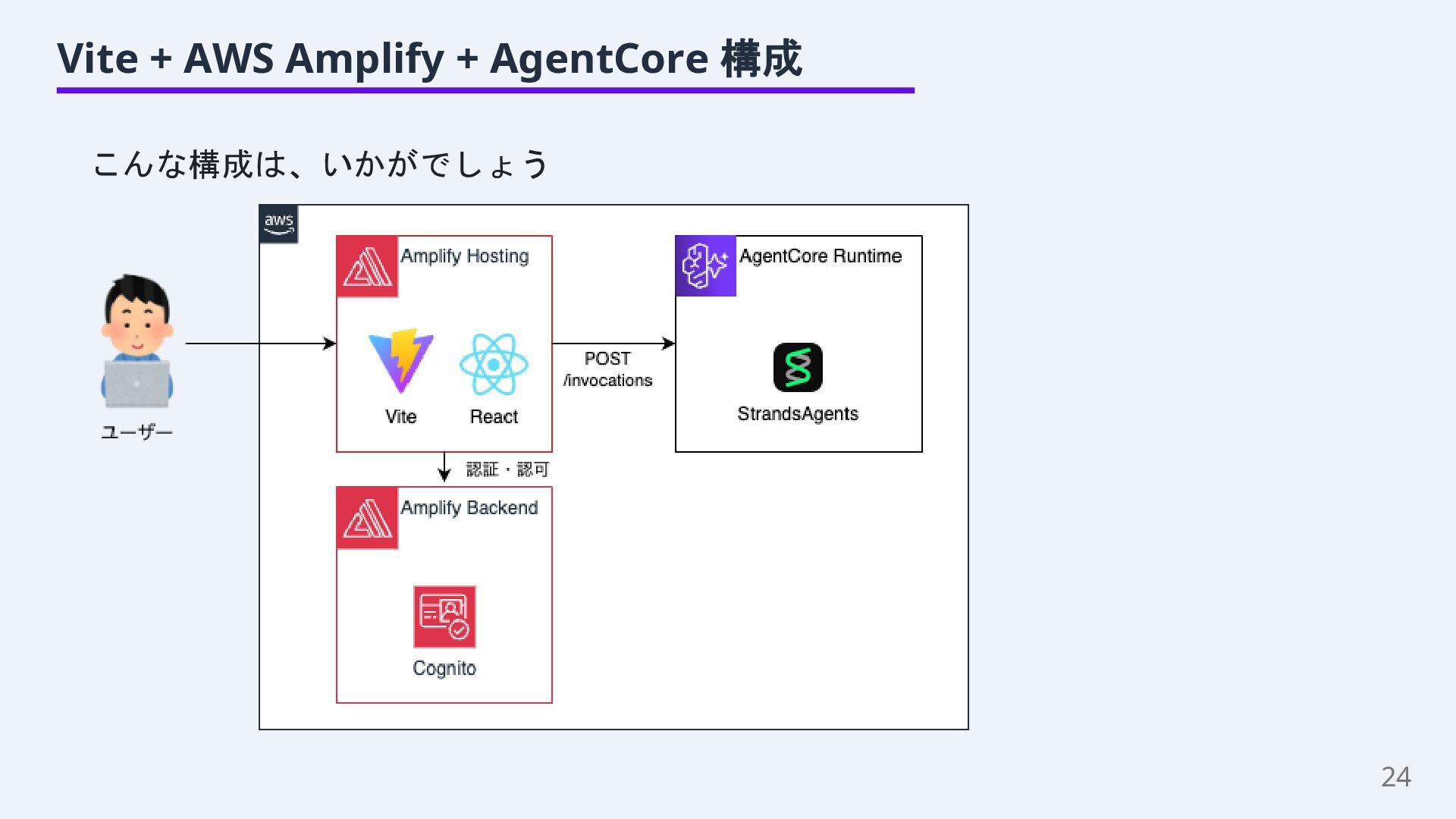 こんな構成は、いかがでしょう Vite + AWS Amplify + AgentCore 構成 24