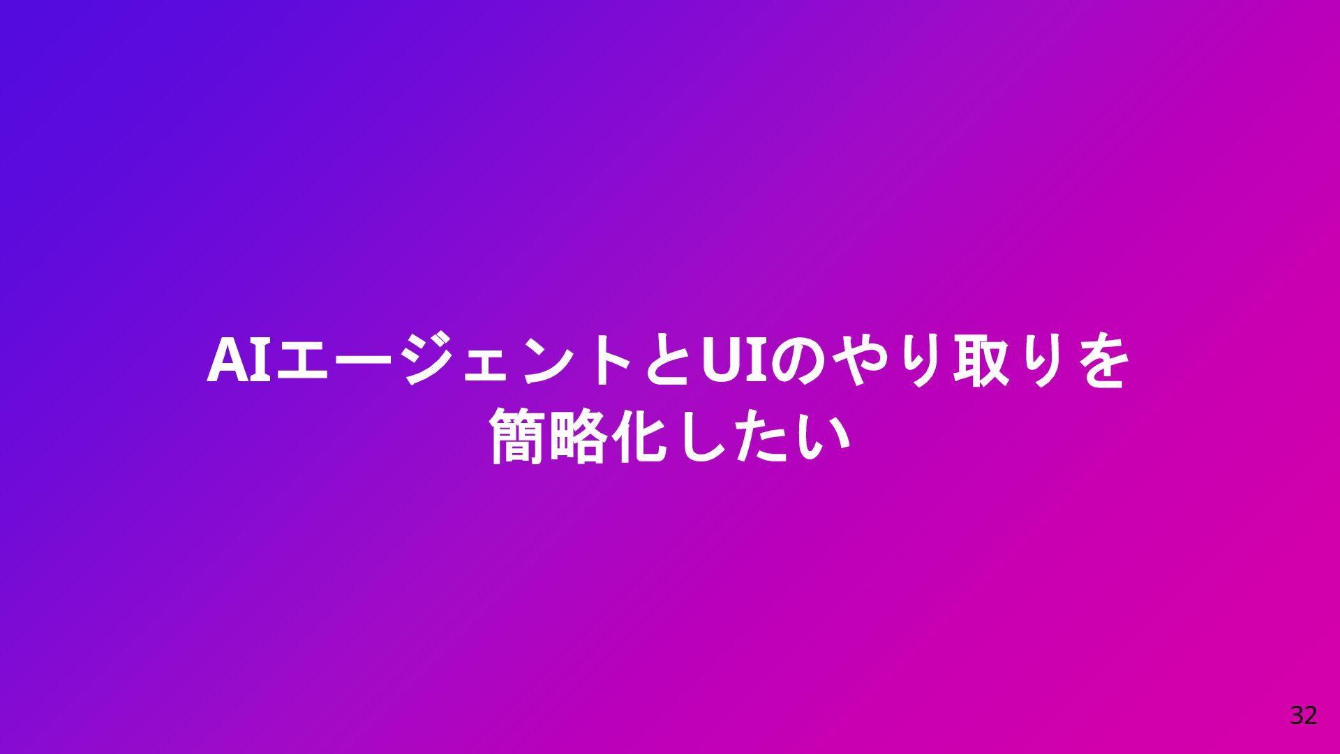 32 AIエージェントとUIのやり取りを 簡略化したい
