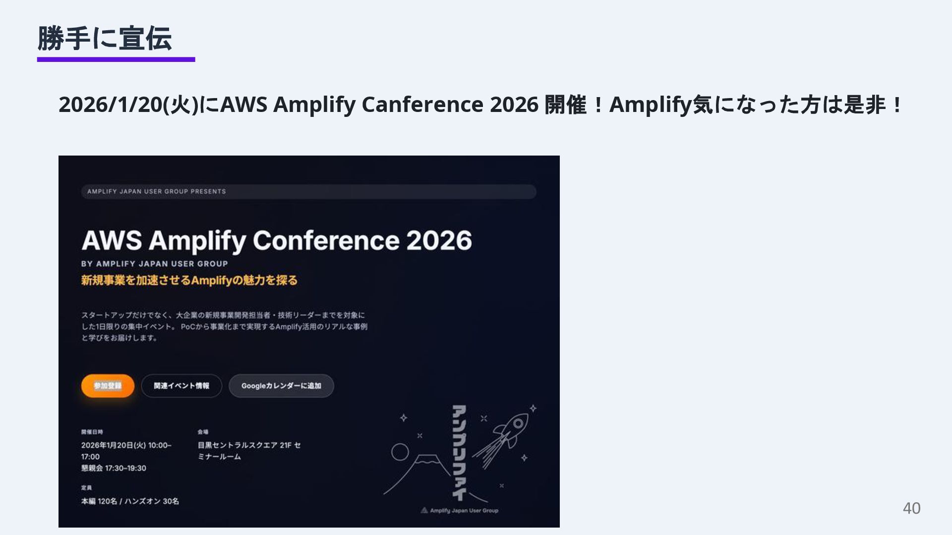2026/1/20(火)にAWS Amplify Canference 2026 開催!Amplify気になった方は是非! 勝手に宣伝 40