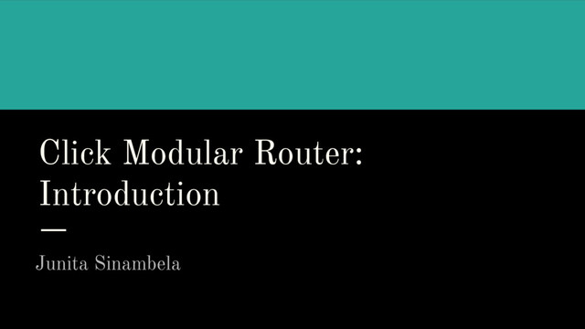 Click Modular Router merupakan suatu router berbasis PC. Karena sifatnya yang flexible dan configurable, router ini biasanya digunakan untuk riset mengenai jaringan komputer ataupun riset mengenai fungsionalitas router sendiri. Tech talk kali ini membahas tentang bagaimana mengkonfigurasi dan menambah fitur pada Click Modular Router.
