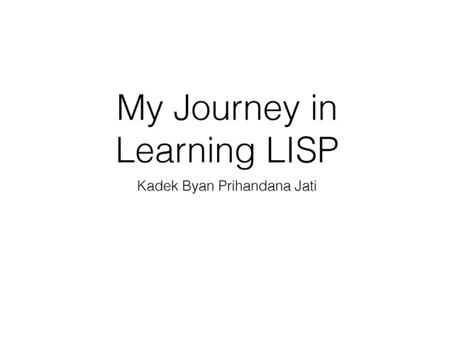 Membahas tentang bahasa pemrograman LISP ( List Programming ), tentang prinsip - prinsip pemrograman LISP yang jarang ditemui dan direpresentasikan oleh bahasa pemrograman yang lain. Disertai juga dengan demo tentang implementasi Machine Learning dengan modern LISP yaitu Clojure.