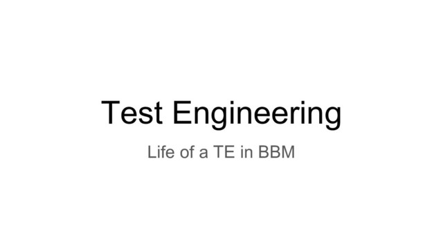 to identify bugs and to ensure the software matches with requirement, manually or using automated tools. • Why is it important? Save time and money by reducing software development and maintenance costs. Ensure a good user experience. • What do we do in BBM? Feature/Bug Testing Smoke Sanity Regression Targeted