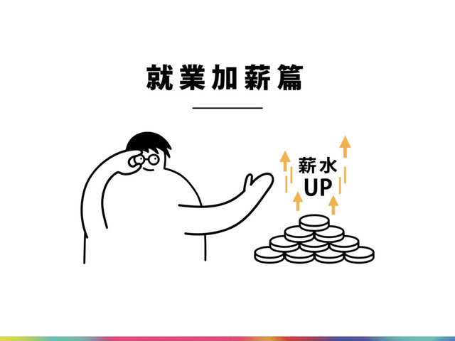 APP建構整合平 台,從育苗、噴 藥、採收到行銷, 透過APP調度資 源。同時讓消費 者可隨時觀看作 物生長情形,確 保食物安全,開 發新商機,並吸 引青年返鄉創業。 人「財」發展 • 從追薪學院之 經驗,依據全 台各產業聚落, 發展獨有之技 職訓練種類, 結合當地大學 中之師資與設 備成為「人力 培訓園區」, 招收鄰近國家 學員來台參訓, 形成技職訓練 產業。 智慧長照 • 針對偏鄉人口老化、 住戶分布零散,與 欠缺醫療資源之情 況,設計一套照護 人力與輔具出借調 度APP,透過村里 間之互助,做到滿 足及時照護之需求。 同時由智慧型手機、 電視與物聯網裝置, 發揮遠端照護功能, 創造偏鄉新就業, 亦可解決偏鄉照顧 人力、品質不足問 題。 優先就業 • 重新設計新工 具或作業系統, 好比讓鍵盤可 以配合輸入的 字發出聲音, 以擴大身障者 可以從事的工 作,並針對願 意增加進用身 障員工的公司, 給予優惠措施, 以擴大身障者 的就業範圍。