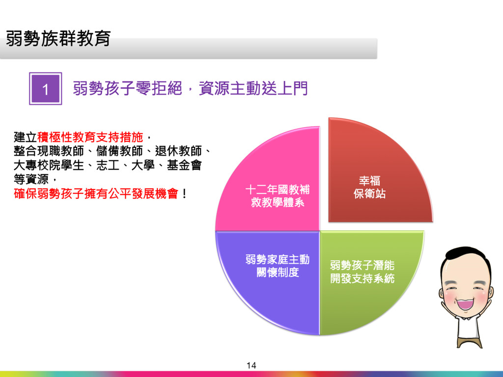 保衛站 弱勢孩子潛能 開發支持系統 弱勢家庭主動 關懷制度 十二年國教補 救教學體系