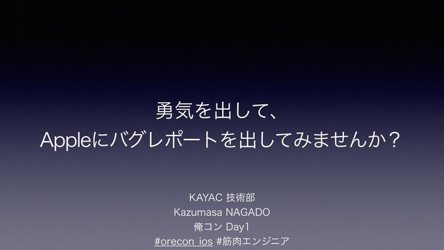 ༐ؾΛग़ͯ͠ɺ "QQMFʹόάϨϙʔτΛग़ͯ͠Έ·ͤΜ͔ʁ ,":"$ٕज़෦ ,B[VNBTB/"("%0 Զίϯ%BZ PSFDPO@JPTےΤϯδχΞ