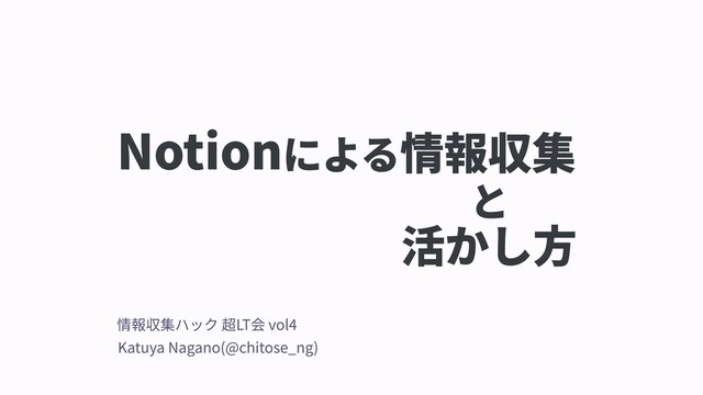 Notionによる情報収集 と 活かし方 Katuya Nagano(@chitose_ng) 情報収集ハック 超LT会 vol4