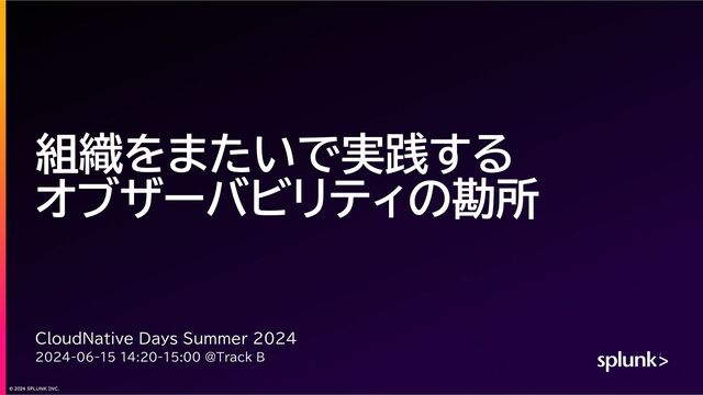 future events, plans or the expected financial performance of our company, including our expectations regarding our products, technology, strategy, customers, markets, acquisitions and investments. These statements reflect management’s current expectations, estimates and assumptions based on the information currently available to us. These forward-looking statements are not guarantees of future performance and involve significant risks, uncertainties and other factors that may cause our actual results, performance or achievements to be materially different from results, performance or achievements expressed or implied by the forward-looking statements contained in this presentation. For additional information about factors that could cause actual results to differ materially from those described in the forward-looking statements made in this presentation, please refer to our periodic reports and other filings with the SEC, including the risk factors identified in our most recent quarterly reports on Form 10-Q and annual reports on Form 10-K, copies of which may be obtained by visiting the Splunk Investor Relations website at www.investors.splunk.com or the SEC's website at www.sec.gov. The forward-looking statements made in this presentation are made as of the time and date of this presentation. If reviewed after the initial presentation, even if made available by us, on our website or otherwise, it may not contain current or accurate information. We disclaim any obligation to update or revise any forward-looking statement based on new information, future events or otherwise, except as required by applicable law. In addition, any information about our roadmap outlines our general product direction and is subject to change at any time without notice. It is for informational purposes only and shall not be incorporated into any contract or other commitment. We undertake no obligation either to develop the features or functionalities described, in beta or in preview (used interchangeably), or to include any such feature or functionality in a future release. Splunk, Splunk> and Turn Data Into Doing are trademarks and registered trademarks of Splunk Inc. in the United States and other countries. All other brand names, product names or trademarks belong to their respective owners. © 2024 Splunk Inc. All rights reserved. © 2024 SPLUNK INC.