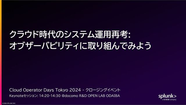 contain forward-looking statements that are subject to the safe harbors created under the Securities Act of 1933, as amended, and the Securities Exchange Act of 1934, as amended. All statements other than statements of historical facts are statements that could be deemed forward-looking statements. These statements are based on current expectations, estimates, forecasts, and projections about the industries in which we operate and the beliefs and assumptions of our management based on the information currently available to us. Words such as “expects,” “anticipates,” “targets,” “goals,” “projects,” “intends,” “plans,” “believes,” “momentum,” “seeks,” “estimates,” “continues,” “endeavors,” “strives,” “may,” variations of such words, and similar expressions are intended to identify such forward-looking statements. In addition, any statements that refer to (1) our goals, commitments, and programs; (2) our business plans, initiatives, and objectives; and (3) our assumptions and expectations, including our expectations regarding our financial performance, products, technology, strategy, customers, markets, acquisitions and investments are forward-looking statements. These forward-looking statements are not guarantees of future performance and involve significant risks, uncertainties and other factors that may cause our actual results, performance or achievements to be materially different from results, performance or achievements expressed or implied by the forward-looking statements contained in this presentation. Readers are cautioned that these forward-looking statements are only predictions and are subject to risks, uncertainties, and assumptions that are difficult to predict, including those identified in the “Risk Factors” section of Cisco’s most recent report on Form 10-Q filed on February 20, 2024 and its most recent report on Form 10-K filed on September 7, 2023, as well as the “Risk Factors” section of Splunk’s most recent report on Form 10-Q filed with the SEC on November 28, 2023. The forward-looking statements made in this presentation are made as of the time and date of this presentation. If reviewed after the initial presentation, even if made available by Cisco or Splunk, on Cisco or Splunk’s website or otherwise, it may not contain current or accurate information. Cisco and Splunk undertake no obligation to revise or update any forward-looking statements for any reason, except as required by law. In addition, any information about new products, features, functionality or our roadmap outlines our general product direction and is subject to change at any time without notice. It is for informational purposes only and shall not be incorporated into any contract or other commitment or be relied upon in making a purchasing decision. We undertake no commitment, promise or obligation either to develop the features or functionalities described, in beta or in preview (used interchangeably), or to include any such feature or functionality in a future release. The development, release, and timing of any features or functionality described for our products remains at our sole discretion. Splunk, Splunk> and Turn Data Into Doing are trademarks and registered trademarks of Splunk Inc. in the United States and other countries. All other brand names, product names or trademarks belong to their respective owners. © 2024 Splunk Inc. All rights reserved.