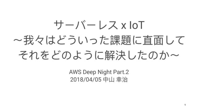 ςЄϝЄϹφ x IoT 뺶౯̸΅Ϳ͚͜͵抓氂ፗᶎͭͼ ͳΨͿ΄Ξ͜ᥴ䷥ͭ͵΄͡뺶 AWS Deep Night Part.2 2018/04/05