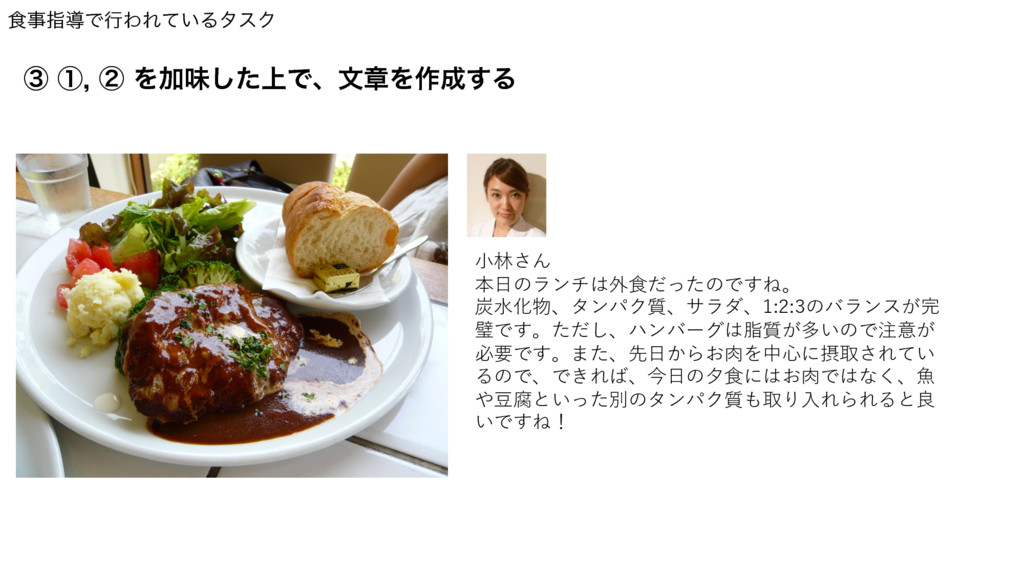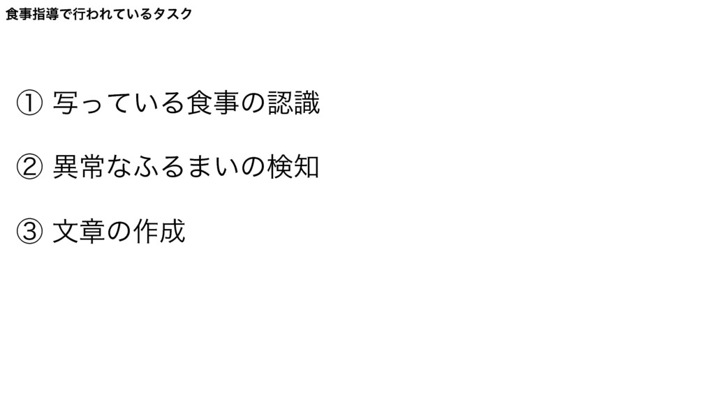 ৯ࣄࢦಋͰߦΘΕ͍ͯΔλεΫ ᶃ ͍ࣸͬͯΔ৯ࣄͷೝࣝ ᶄ ҟৗͳ;Δ·͍ͷݕ ᶅ จষͷ࡞