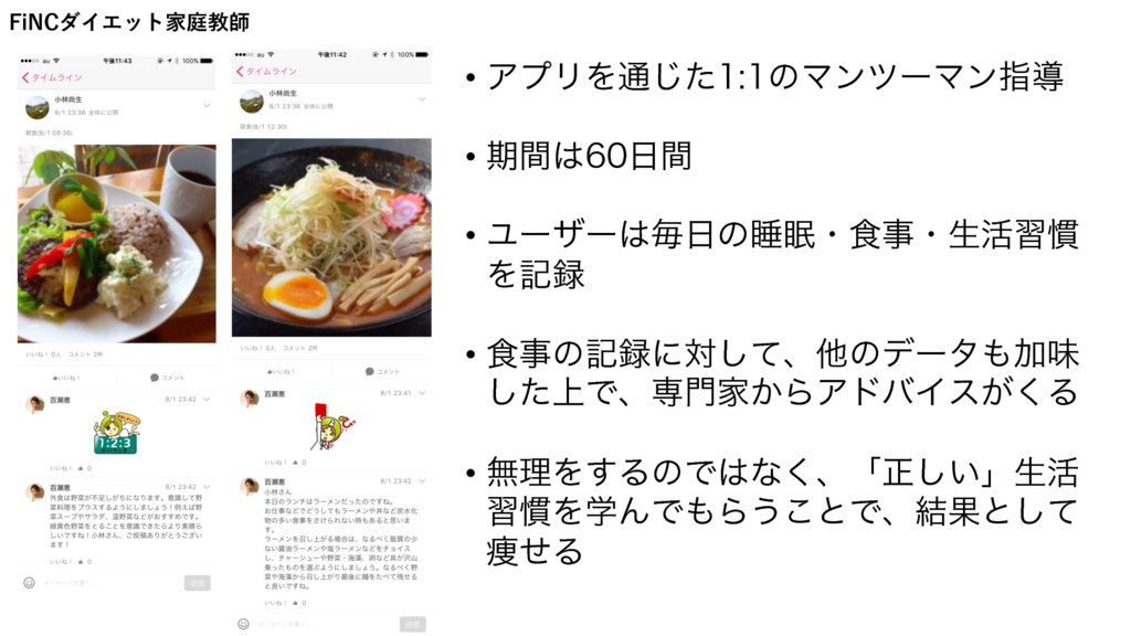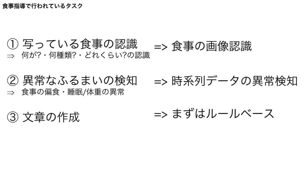 'J/$μΠΤοτՈఉڭࢣ • ΞϓϦΛ௨ͨ͡ͷϚϯπʔϚϯࢦಋ • ظؒؒ • Ϣʔβʔຖͷਭɾ৯ࣄɾੜ׆श׳ Λه • ৯ࣄͷهʹରͯ͠ɺଞͷσʔλՃຯ
