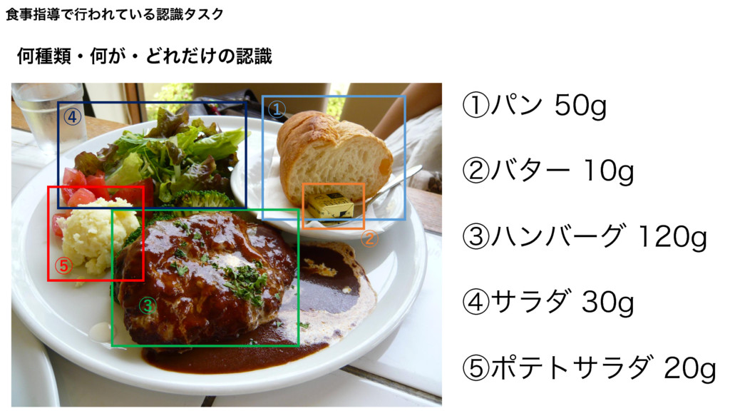 ৯ࣄࢦಋͰߦΘΕ͍ͯΔλεΫ ᶃ ͍ࣸͬͯΔ৯ࣄͷೝࣝ Þ Կ͕ ɾԿछྨ ɾͲΕ͘Β͍ ͷೝࣝ ᶄ ҟৗͳ;Δ·͍ͷݕ