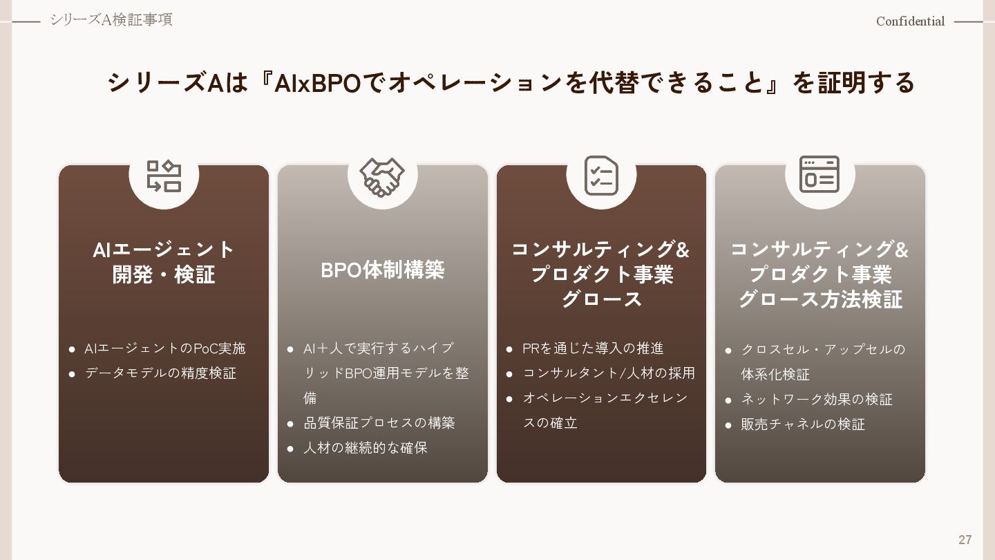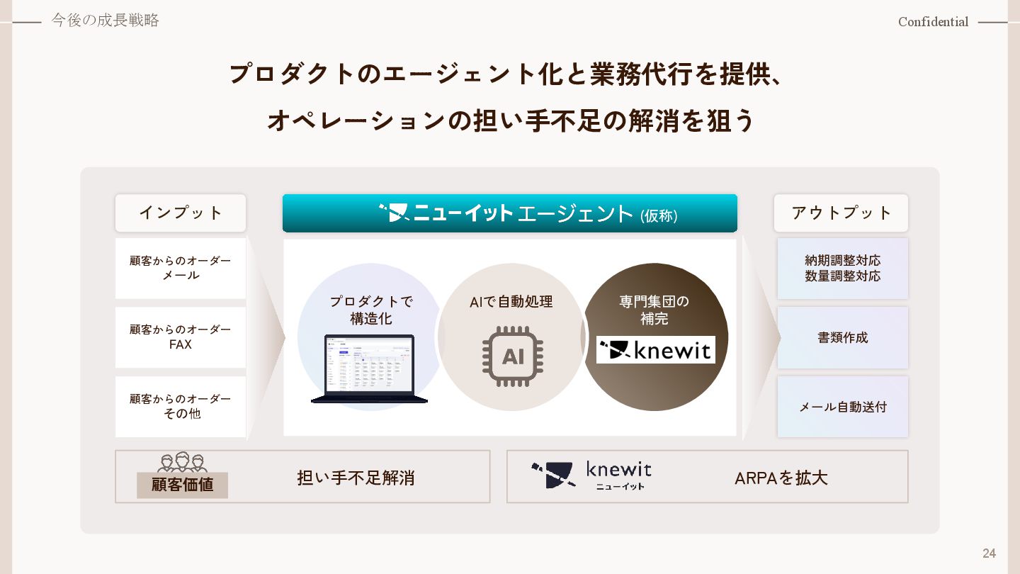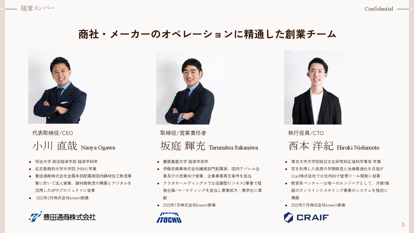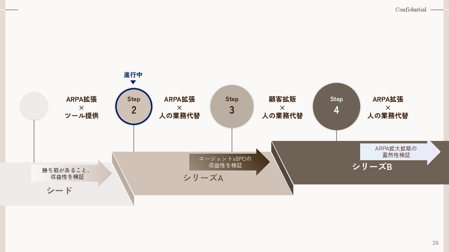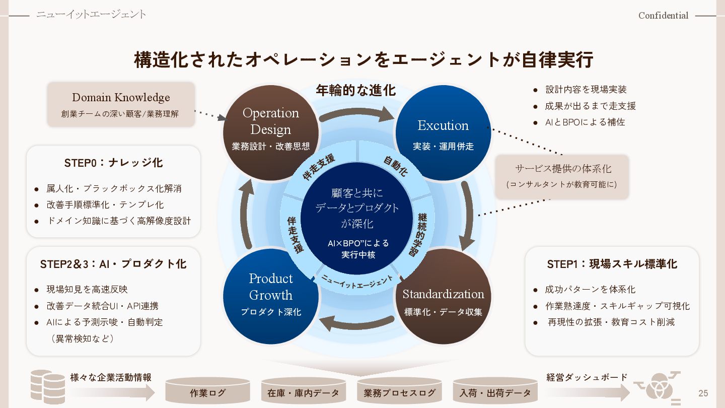約4,200億 中堅・大企業のオペレーション人件費総額 2.1兆円 市場規模 参考 TAM(Total Addressable Market)の定義 小規模企業はオペレーション人員が少なく、構造的改善によるインパクトが限 定的なため対象外とする。 中堅企業および大企業をTAMの対象とする。 TAM対象人員数: 中堅:269,500人、大企業:115,500人=合計:385,000人 オペレーション人員の平均人件費を以下と設定する。 1人あたり人件費:5,500,000円/年 TAM金額: 385,000人 × 5,500,000円 = 約2.1兆円/年 SOM(Serviceable Obtainable Market)の定義 TAMに含まれるオペレーション業務のうち、 業務改善・効率化により見直し可能な領域を20%と仮定する。 SOM金額: 2.1兆円 × 20% = 約4,200億円 SAM(Serviceable Available Market)の定義 SOMの中から、現実的に狙える市場を以下の条件で絞り込む。 条件① 産業領域 調達・物流オペレーション比重の高い産業(鉄鋼、化学等)を20%と仮定 条件② IT投資意欲 基幹システムや業務基盤のリプレイスに対して意欲のある企業を20~40%と仮 定 SAM金額: 4,200億円 × 20% × 20~40% = 約160~320億円 荷主のオペレーション領域は巨大市場×改善余剰有×専門性高 *2. 企業規模別の内訳 企業数ベース 区分/社数比率/社数/オペレーション人数/合計人数(下限より) 小規模/93%/358,050社/2〜4人/716,100人 中堅/7%/26,950社/10〜30人/269,500人 大企業/0.3%/1,155社/100〜500人/115,500人 *1. 市場母数の定義 国内のメーカー・商社は合計55万社とする。 メーカー:約34万社、商社:約21万社 このうち、業務オペレーションに一定の仕組み(業務プロセスやシステム)を取り入れている企業を70%と仮定する。 紙運用のみ、家族経営中心など、構造的な業務改善余地が乏しい企業は除外する。 対象企業数:55万社 × 70% = 約38.5万社 市場性