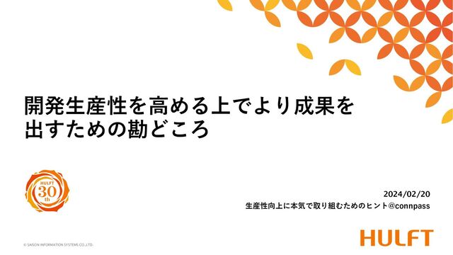 © SAISON INFORMATION SYSTEMS CO.,LTD. 生産性向上に本気で取り組むためのヒント@connpass 2024/02/20 開発生産性を高める上でより成果を 出すための勘どころ