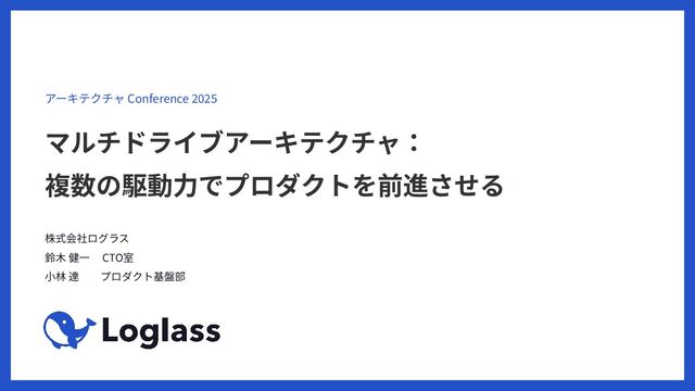 ⻑期視点で⼼臓部の再構成 モノリス分割‧認知負荷低減 Loglass AI Agents構想 AIネイティブカンパニーへ 経営管理、⼈員計画、 2027年までに20プロダクト リアーキテクチャ マルチプロダクト AI ⼀貫性のある進化のための「共通基盤」の機運 事例 2/2: 全社横断の共通基盤 複数の⼤きな変化が、同時に起こりつつある ⻑期視点での 抜本的な変化が⽬的 製品ごとに 要件‧技術‧進度に「差」 刻々、世の状況が変わり ⽅向を定めにくい