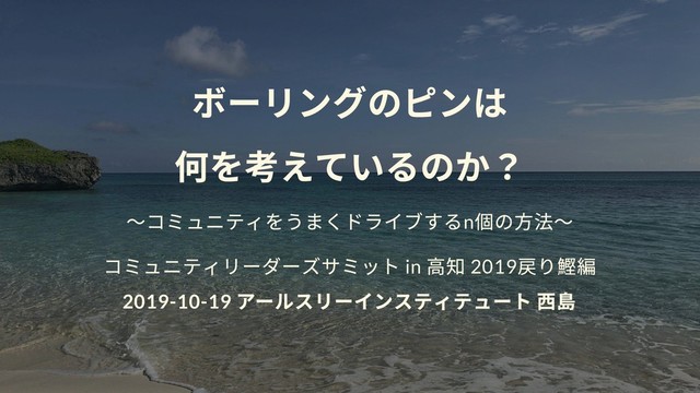 ボーリングのピンは 何を考えているのか? 〜コミュニティをうまくドライブするn 個の⽅法〜 コミュニティリーダーズサミット in ⾼知 2019 戻り鰹編 2019-10-19