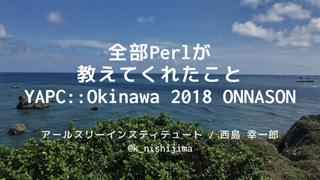 @k_nishijima 全部Perlが 教えてくれたこと YAPC::Okinawa 2018 ONNASON アールスリーインスティテュート / 西島 幸一郎