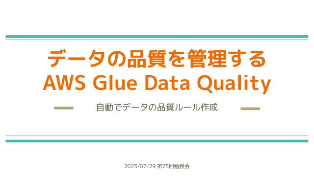 データの品質を管理する AWS Glue Data Quality 自動でデータの品質ルール作成 2023/07/29 第25回勉強会