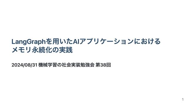 LangGraphを用いた AIアプリケーションにおける メモリ永続化の実践 2024/08/31 機械学習の社会実装勉強会 第 38回 1