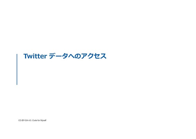 Twitter データへのアクセス CC-BY-SA 4.0. Code for Myself