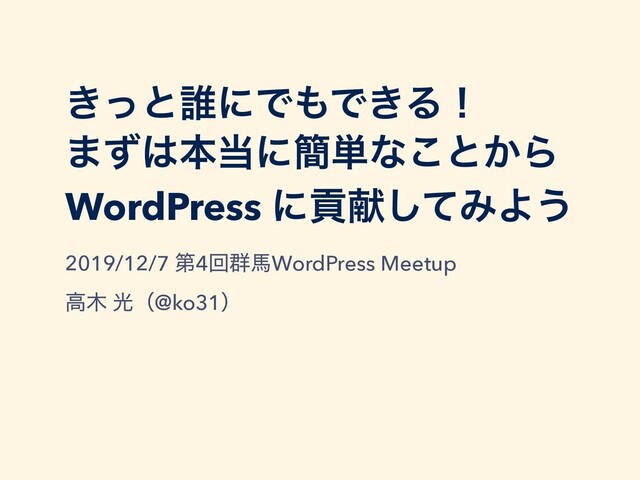 ͖ͬͱ୭ʹͰͰ͖Δʂ ·ͣຊʹ؆୯ͳ͜ͱ͔Β WordPress ʹߩݙͯ͠ΈΑ͏ 2019/12/7 ୈ4ճ܈അWordPress Meetup ߴ ޫʢ@ko31ʣ