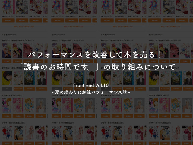 ύϑΥʔϚϯεΛվળͯ͠ຊΛചΔʂ ʮಡॻͷ͓࣌ؒͰ͢ɻʯͷऔΓΈʹ͍ͭͯ 'SPOUSFOE7PM ՆͷऴΘΓʹೲྋύϑΥʔϚϯε