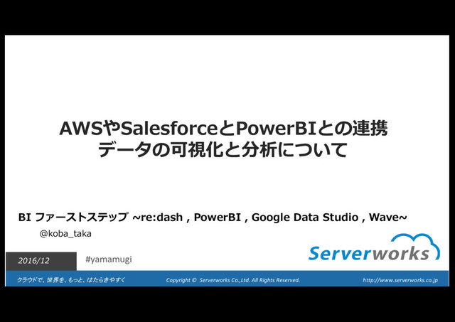 クラウドで、世界を、もっと、はたらきやすく Copyright © Serverworks Co.,Ltd. All Rights Reserved. http://www.serverworks.co.jp AWSやSalesforceとPowerBIとの連携