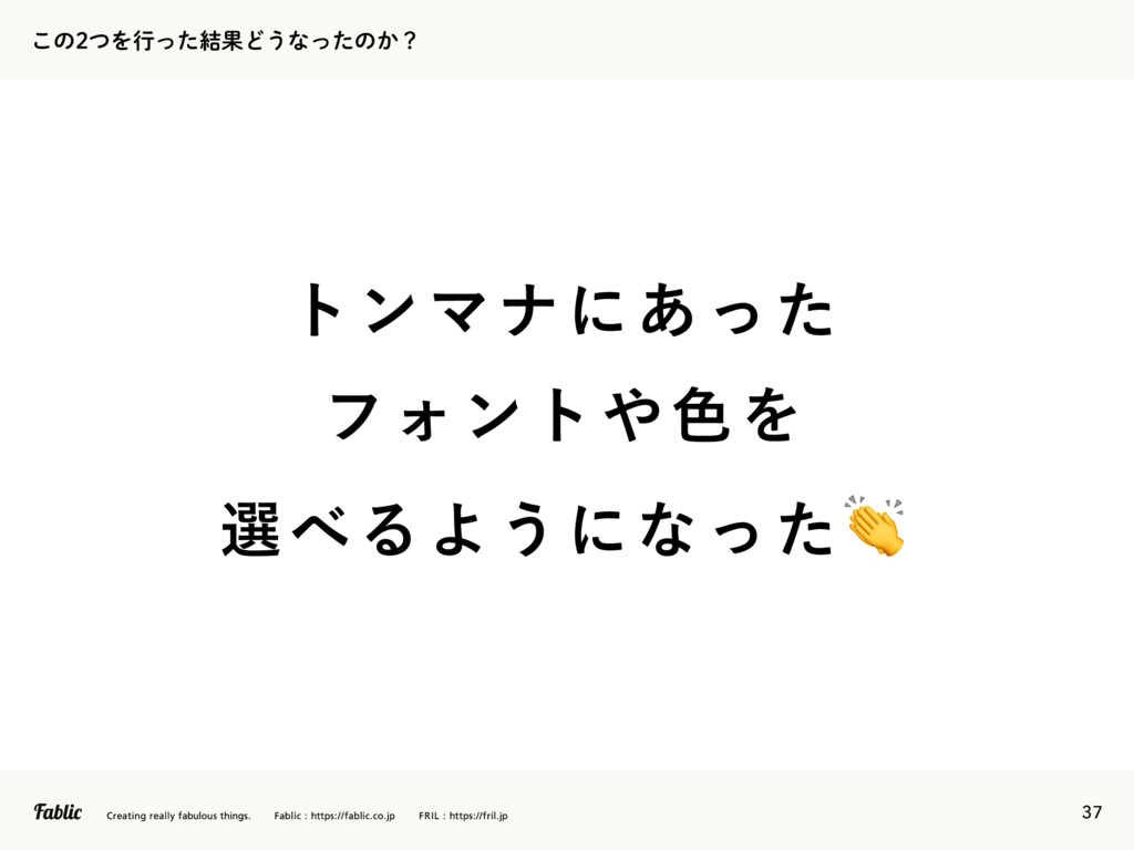37 ͜ͷͭΛߦͬͨ݁ՌͲ͏ͳͬͨͷ͔ʁ τϯϚφʹ͋ͬͨ ϑΥϯτ৭Λ બΔΑ͏ʹͳͬͨ