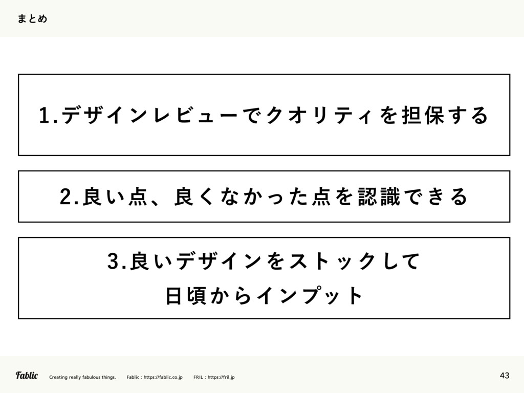 43 ·ͱΊ σβΠϯϨϏϡʔͰΫΦϦςΟΛ୲อ͢Δ ྑ͍σβΠϯΛετοΫͯ͠ ࠒ͔ΒΠϯϓοτ ྑ͍ɺྑ͘ͳ͔ͬͨΛೝࣝͰ͖Δ