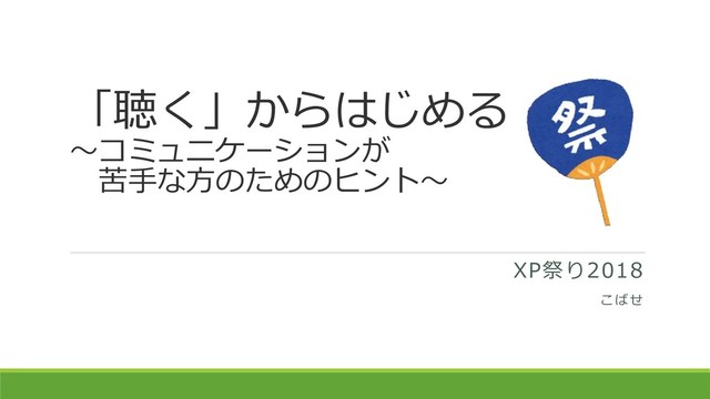 「聴く」からはじめる ~コミュニケーションが 苦手な方のためのヒント~ XP祭り2018 こばせ