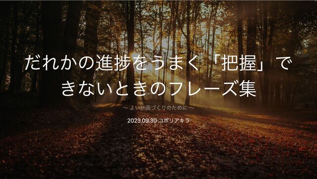 だれかの進捗をうまく「把握」で きないときのフレーズ集 2023.09.30 コボリアキラ 〜 よい計画づくりのために 〜