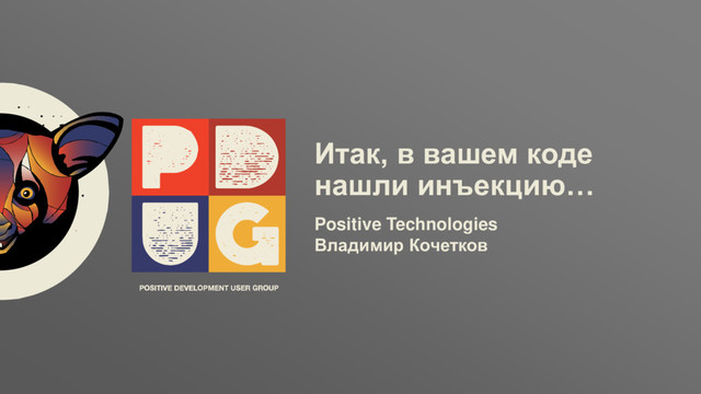 Technologies AppSec- и CS-исследователь (формальные методы анализа и защиты кода) Организатор Positive Development User Group https://about.me/vladimir.kochetkov https://kochetkov.github.io/ [email protected] :~$ whoami