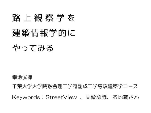 路 上 観 察 学 を 建築情報学的に やってみる 幸地洸樺 千葉大学大学院融合理工学府創成工学専攻建築学コース