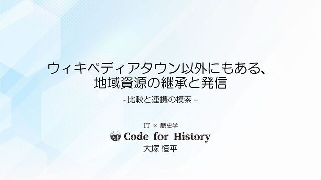 ウィキペディアタウン以外にもある、 地域資源の継承と発信 - 比較と連携の模索 – 大塚 恒平