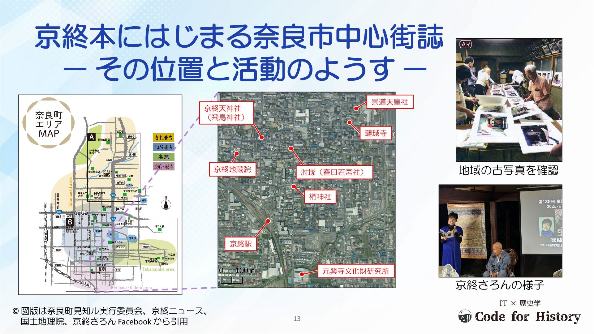 京終本にはじまる奈良市中心街誌 - その位置と活動のようす - 13 © 図版は奈良町見知ル実行委員会、京終ニュース、 国土地理院、京終さろん Facebook から引用