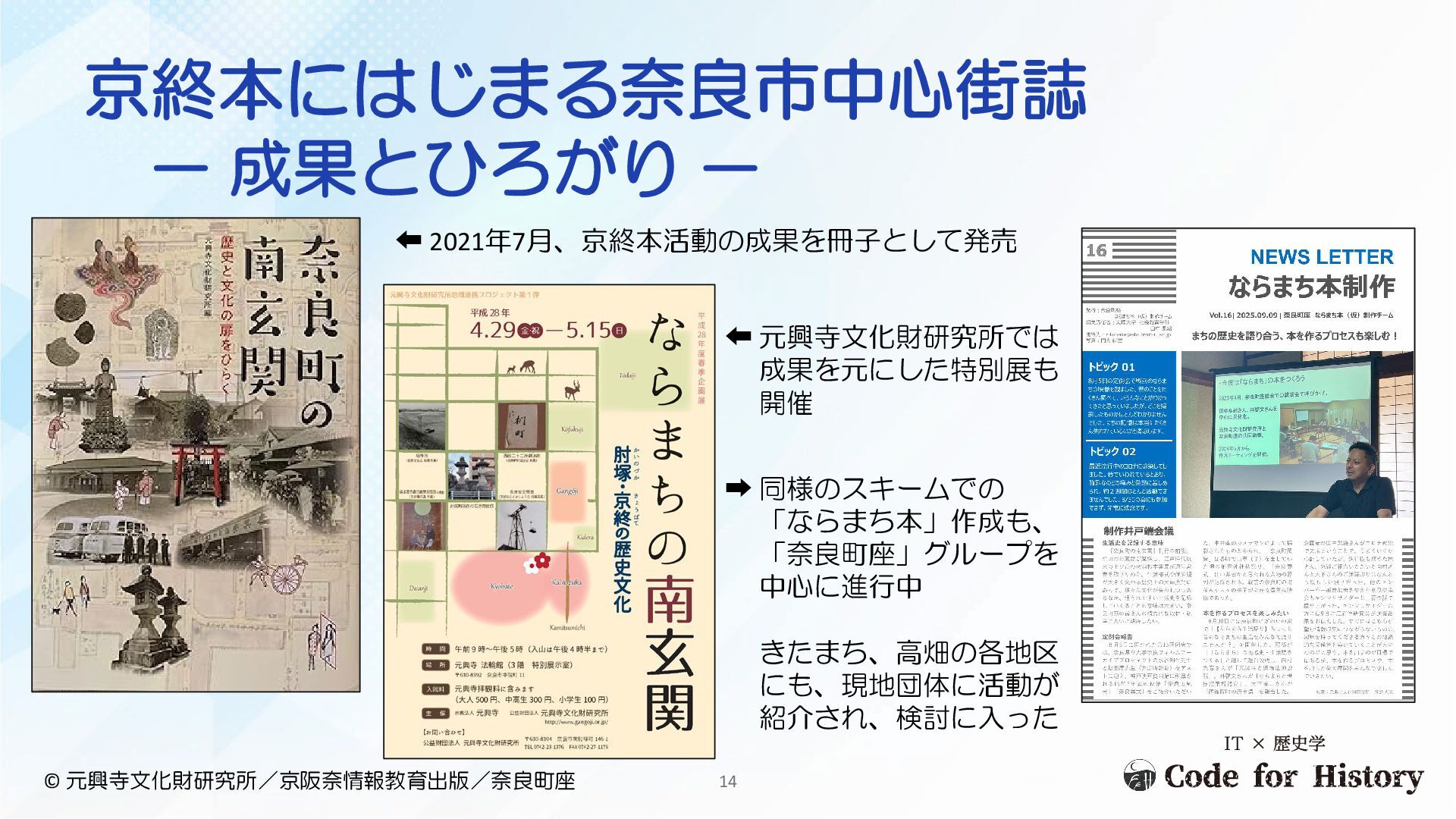 京終本にはじまる奈良市中心街誌 - 成果とひろがり - ⬅ 2021年7月、京終本活動の成果を冊子として発売 © 元興寺文化財研究所/京阪奈情報教育出版/奈良町座 14 ⬅