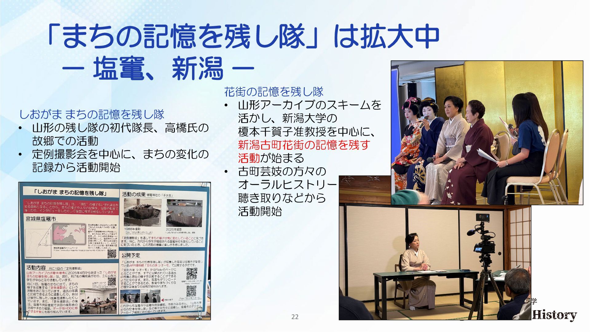 「まちの記憶を残し隊」は拡大中 - 塩竃、新潟 - しおがま まちの記憶を残し隊 • 山形の残し隊の初代隊長、高橋氏の 故郷での活動 •