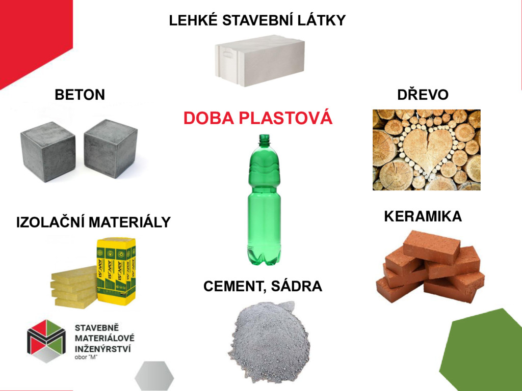 • Dřevo • Izolační materiály • Plastické látky • Lehké stavební látky • Kompozitní materiály • Ekologii ve stavebnictví • Oceňování • Technologii sanace • Ekonomiku stavebního průmyslu • Laboratorní a experimentální metody • Stavební hmoty a dílce • a další…