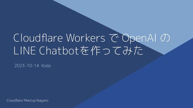 Cloudflare Workers で OpenAI の LINE Chatbotを作ってみた 2023-10-14 Koda Cloudflare